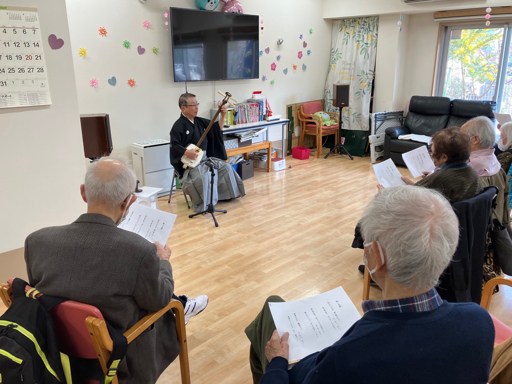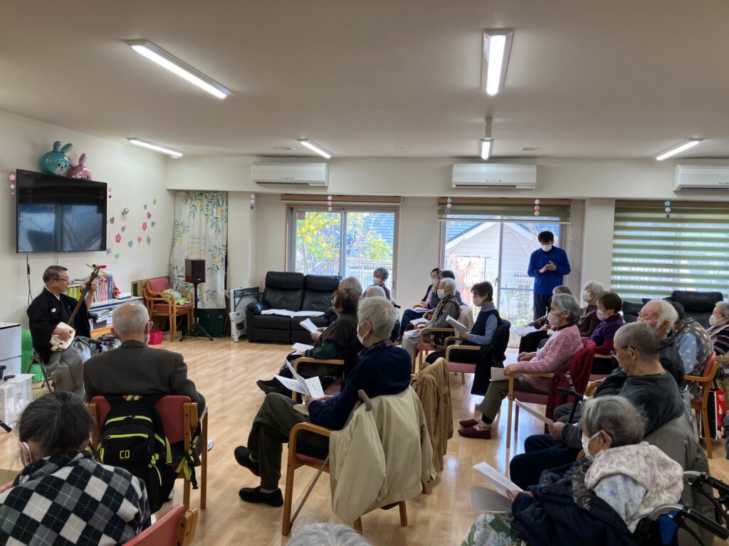 津軽三味線 高籏定氏 イベント 2026.03.15 3月9日 月曜日 津軽三味線の演奏会を 高籏定氏に開催していただきました(^O^)/ 3回目の演奏会となりますが、今回も 盛り上がりました!(^^)! 民謡など皆さまたくさん歌い 大満足の様子でした(*^^)v